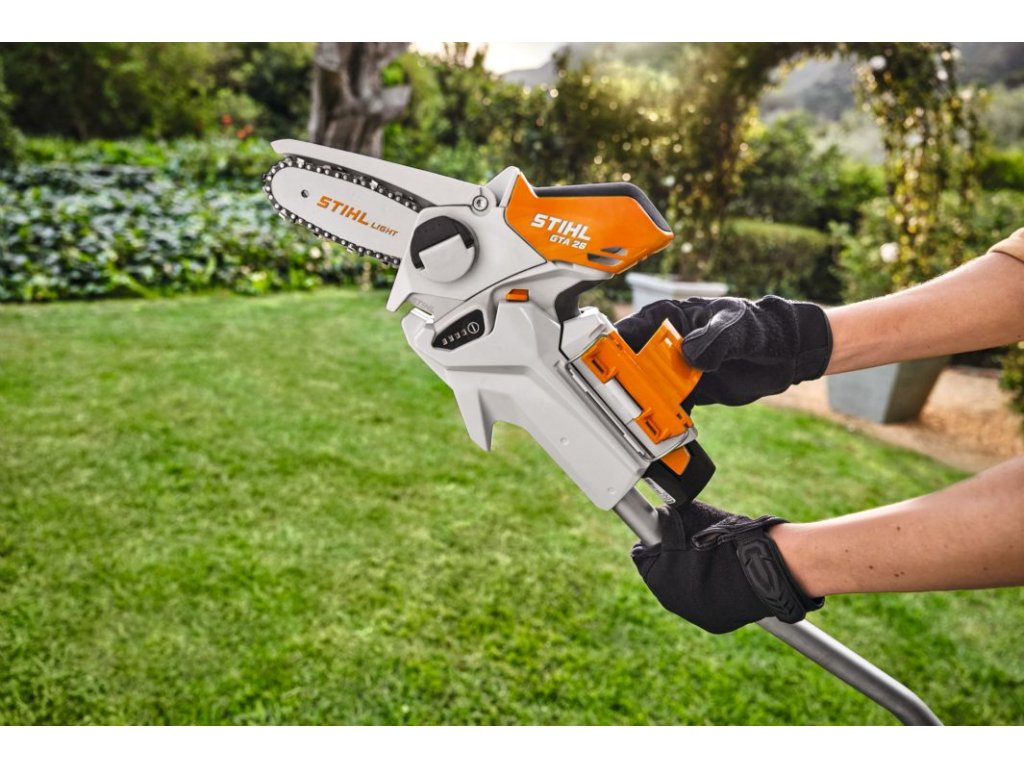 S prodlužovací tyčí pro STIHL GTA 26 můžete pohodlně zvýšit dosah své akumulátorové minipily STIHL GTA 26, abyste při práci na zahradě snadněji dosáhli i na vzdálenější větve.