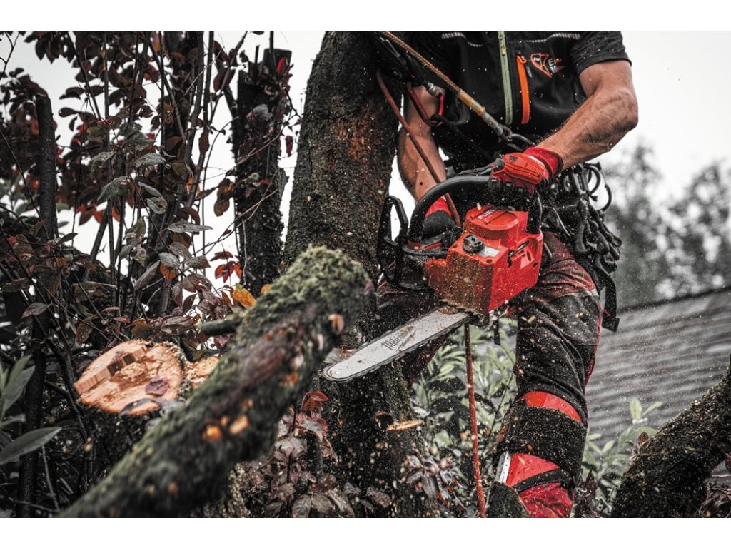 - Díky konstrukci s horní rukojetí a optimálnímu vyvážení je tato pila ideálně vhodná k prořezávání stromů