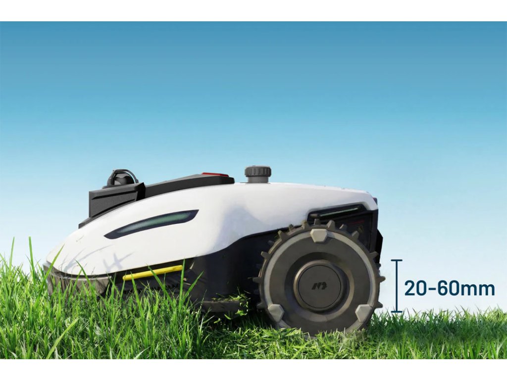 YUKA mini 2 1000 s pohonem zadních kol si poradí se sklonem zahrady až 45% (24°) a přejede nerovnosti na trávníku do velikosti 35 mm.