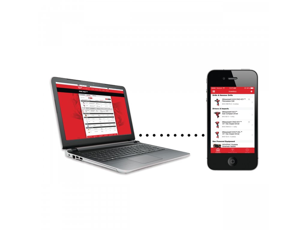 - Aplikace ONE-KEY™ nabízí funkci inventáře pro kompletní správu veškerého nářadí/vybavení