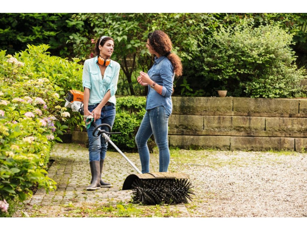 PRO BEZPEČNOU PRÁCI V STÍSNĚNÉM PROSTORU. Rukojeť zajišťuje dobrou ovladatelnost přístroje i v omezených prostorových podmínkách. Omezovač kroků zajišťuje vaši bezpečnost: Chodidla ani nohy se během práce nemohou příliš přiblížit nožům nebo žacím hlavám.